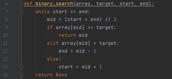 우선 15번째 줄에서 들여쓰기가 잘못됨. while문을 다 돌고 나와서 답을 찾을 수 없으면 그때 None을 반환하는게 맞음.