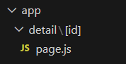 1. 다음과 같이 detail 폴더를 만들고, 그 안에 [id]라는 폴더를 또 만든다.