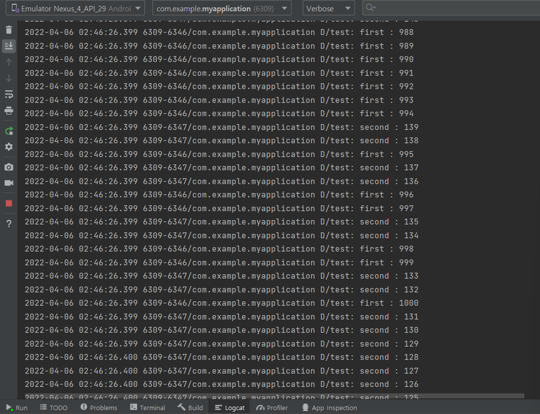 +방법2) RunOnUiThread() 함수를 이용하면 내부 코드가 메인 스레드에서 실행됨